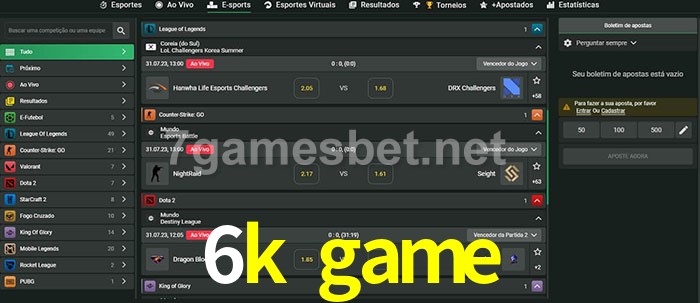 O 6k game oferece uma grande seleção de opções de apostas em e-sports com probabilidades competitivas